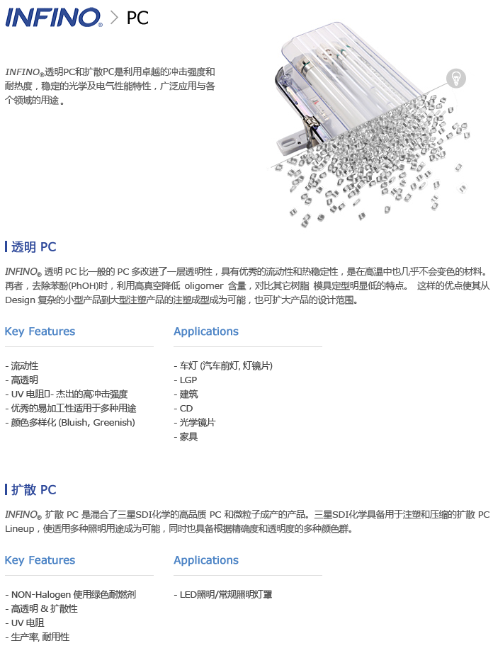 >> 韩国三星第一毛织INFINO系列PC工程塑料