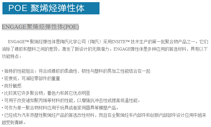 >> 美国陶氏ENGAGE品牌POE聚烯烃弹性体ac米兰app官网