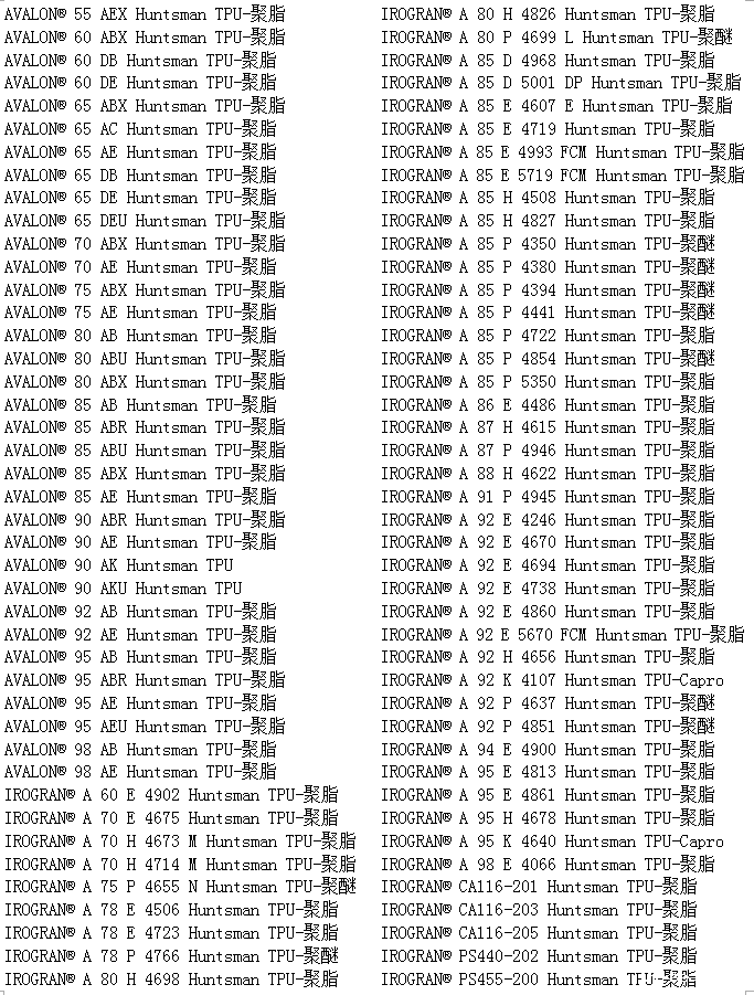 IROGRAN是亨斯迈热塑性聚氨酯(TPU)系列产品的注册商标。IROGRAN系列TPU材料性能卓越,即使在极端环境条件下也能保持优异的性能,因此在业内树立了良好的口碑。 | |